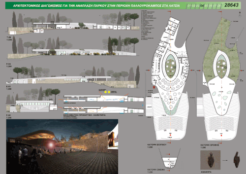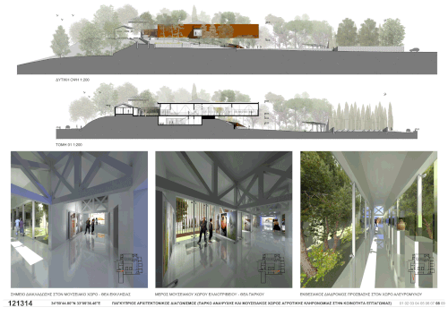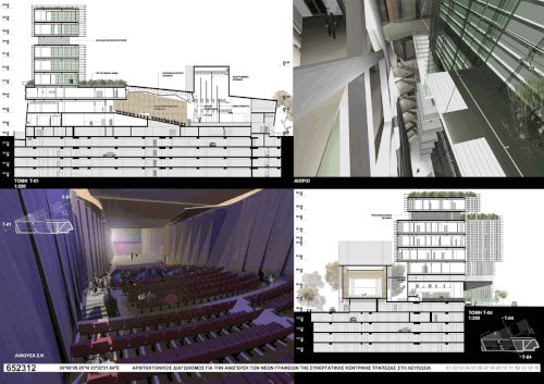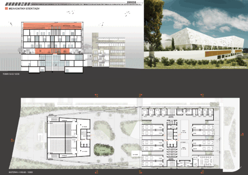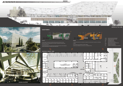 Every human task, spiritual or materialistic, that results in intellectual work or a crafted product, is an objective '' record '' of the psyche of its creator. This act, by its very nature, reveals the perception of workmanship for the objective world (nature-society), and expresses ideas and parallel (more or less) feelings. It could be said that every creation is essentially an essay on a particular topic, and is just as applicable as a sentence would be to another man (society). By providing a service or practice or doctrine, always with delight, like a sub-human language of communication, addresses the calculus and the feeling of others and always expresses individuality. Practical, utilitarian, or spiritual and moral functions of the human creation are usually expressed artistically. The end result is the product of subjective and objective factors, that should satisfy predefined requirements and individual / collective features to comply with the tastes and habits of users (program). By adopting this methodology, we approached the issue (program) and also the search for a suitable composition. The aim is to locate the various functions (subsets) to form the backbone of a scenario (total) simultaneously, that aims to achieve an outcome of contemporary architecture: the rational, artful and purposeful organization of space (internal and external) to serve the general activities (individually and collectively), while shaping the physical aesthetics. The first, clearly covers practical utility, the second nurtures and enhances the aesthetic consciousness of society by expressing temporal messages, reflecting the resultant social consciousness (teaching). From the 6th century BC Parmenides thought that the universe is structured in opposite pairs: light-dark, thick-thin, cold-hot, is-not, full-empty, etc. We believe that large public buildings should have a strong geometry, both for entertainment reasons and as a response to the urban environment, while being prominant landmarks within the chaotic urban environment. The building was essentially designed using the local contextual data, such as, inter-dependent functions, future adjacent uses, climate, orientation, perimeter accesses and spatial relationships of the external spaces. A thorough commitment was made to create an energy efficient and responsive microclimate within the design that minimized energy consumption.