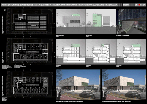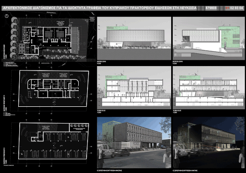 The competition was launched by the community of Ay.Athanasios, Limassol to accommodate the offices of the new Municipality and to create a multifunction theater for the cultural events.The location is set at the edge between the old part of the village and the new expanding "modern" part.The blind walls are a statement that underlines the necessity of a new approach towards the way we envisage architecture in relation to the existing urban fabric.The inclined volumes augment the tension between fragility and stability and creates a dynamic relationship between the modest early years (of the village) with the frenetic new modern era (of the town).